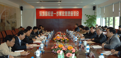 “深圳市高校进一步解放思想座谈会”在深圳大学举行 【本报讯】(记者 马璇 秦小艳)新一轮解放思想学习讨论活动正在我市教育系统内广泛开展。16日下午,市委教育工委在深圳大学举行“深圳市高校进一步解放思想座谈会”,市委常委、市委教育工委书记李意珍在会上强调,高校要在新一轮解放思想活动中发挥“理论先导、实践示范”的作用,并借新一轮解放思想活动的强劲“东风”,实现深圳高等教育跨越性的科...