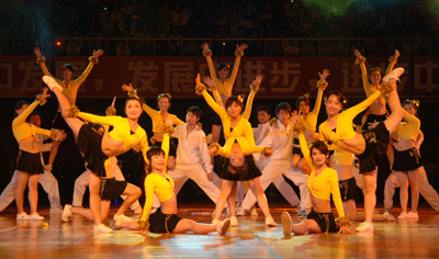 奏唱国歌后,充满青春活力的啦啦队表演和交谊舞表演使现场师生陶醉其中,掌声一次一次随着音乐节拍响起。章必功校长和可口可乐公司负责人为我校北京2008火炬护跑手颁发奖牌。