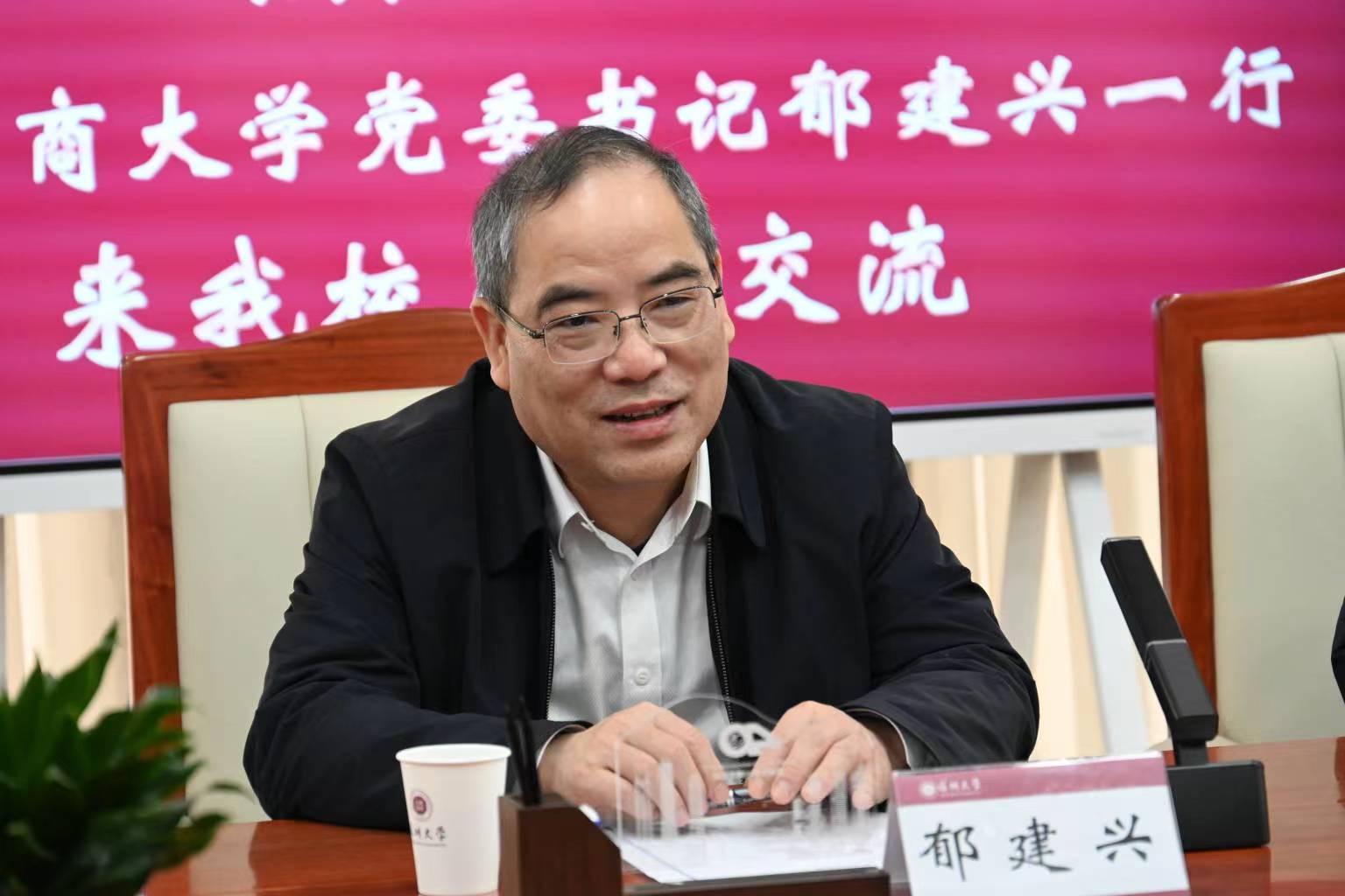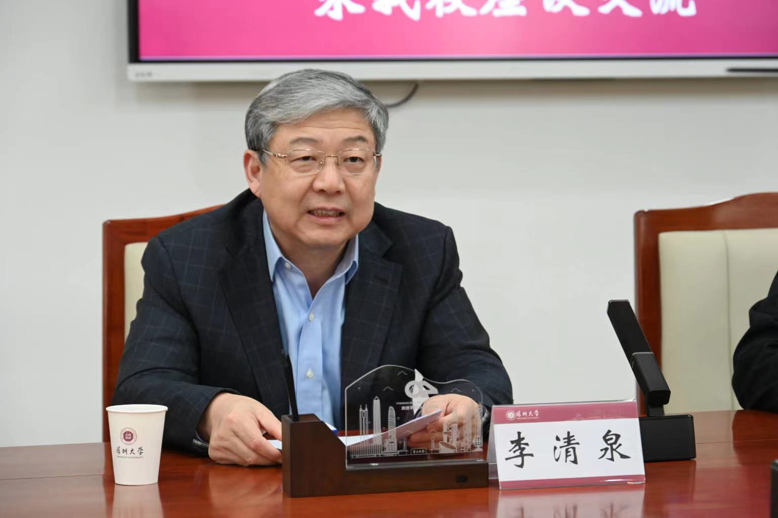 李清泉对郁建兴一行的到来表示欢迎,并简要介绍深圳大学的基本情况。他表示,大学的发展需要外部政策和内在动力的双重驱动。在深圳市委市政府的大力支持下,深圳大学通过构建内部激励机制充分调动全校积极性,在基础设施、学科建设、科研技术等方面持续发展。当前深圳大学的许多方面仍处于爬坡阶段,未来将在博士点和重点实验室建设等方面继续发力,关注学科交叉和产学研结合,为科研发展提供坚实支撑。希望双方借此契机加强联系,在科研共建上有更多的交流与合作。