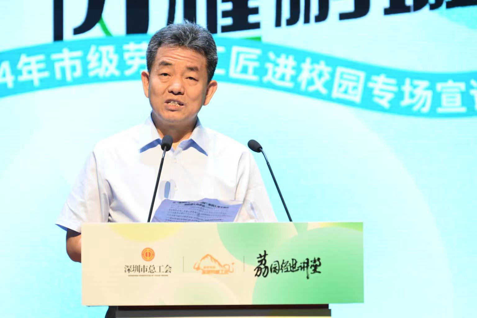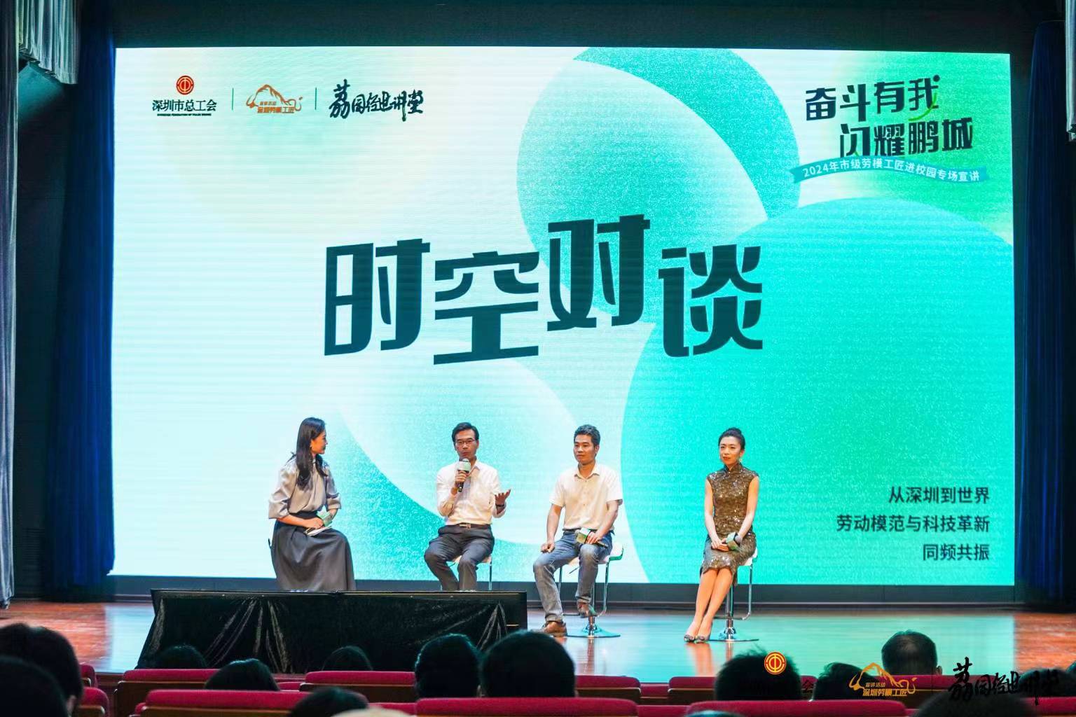 4月1日,由深圳市总工会、深圳市教育局、深圳大学主办,深圳晚报社承办的“奋斗有我闪耀鹏城”2024年市级劳模工匠进校园专场宣讲在深圳大学粤海校区国际会议厅举行。这也是深圳大学“荔园经世讲堂”的第二期。三位来自建筑、航天、非遗领域的深圳劳模工匠围绕匠心建造、建设航天强国、文化传承创新等主题,结合自身经历,讲述他们在平凡岗位上的不凡故事,与青年学子们近距离交流,为在场的500余位师生上了一堂生动的劳动教育课。