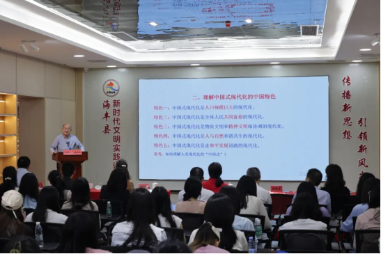 随后,来自深圳大学马克思主义学院的老师为现场人员带来了一场生动的理论讲座,深入浅出地讲解了中国式现代化的丰富内涵,让现场人员对新时代党的中心任务有了更深刻具体的理解和感悟。