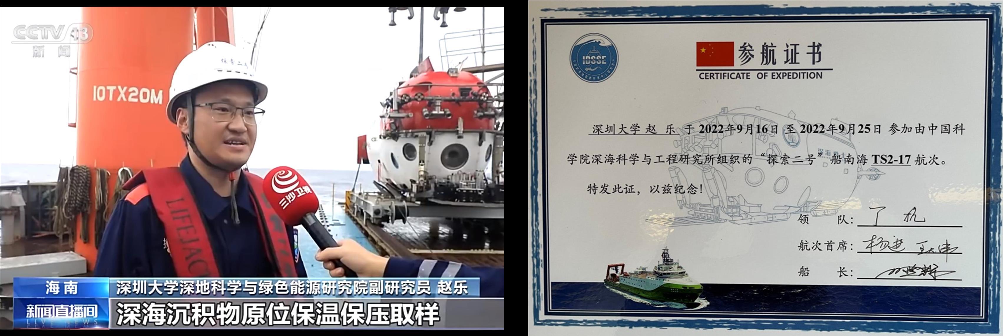 2022年9月23日,由我校土木与交通工程学院谢和平院士领衔、深圳大学与四川大学团队自主研制的深海沉积物(天然气水合物)保温保压取样装备海试成功,实现了国际上首次获得保温保压的深海沉积物(天然气水合物)原位保真样本。