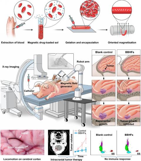 论文信息:Ben Wang†*, Jie Shen†, Chenyang Huang†, Zhicheng Ye, Jiajun He, Xinyu Wu, Zhiguang Guo, Li Zhang*, Tiantian Xu*, Magnetically-driven biohybrid blood hydrogel fibres for personalized intracranial tumour therapy under fluoroscopic tracking.Nature Biomedical Engineering2025, DOI: 10.1038/s41551-025-01382-z.