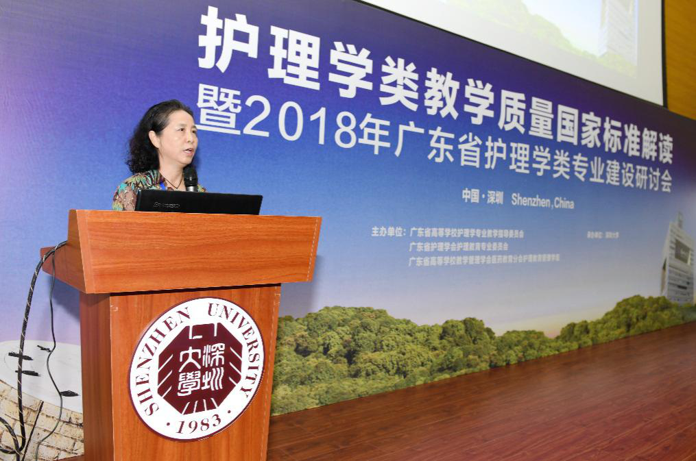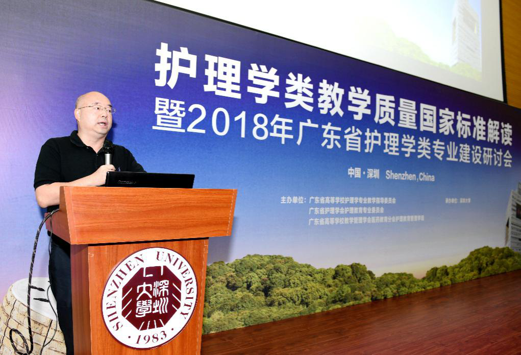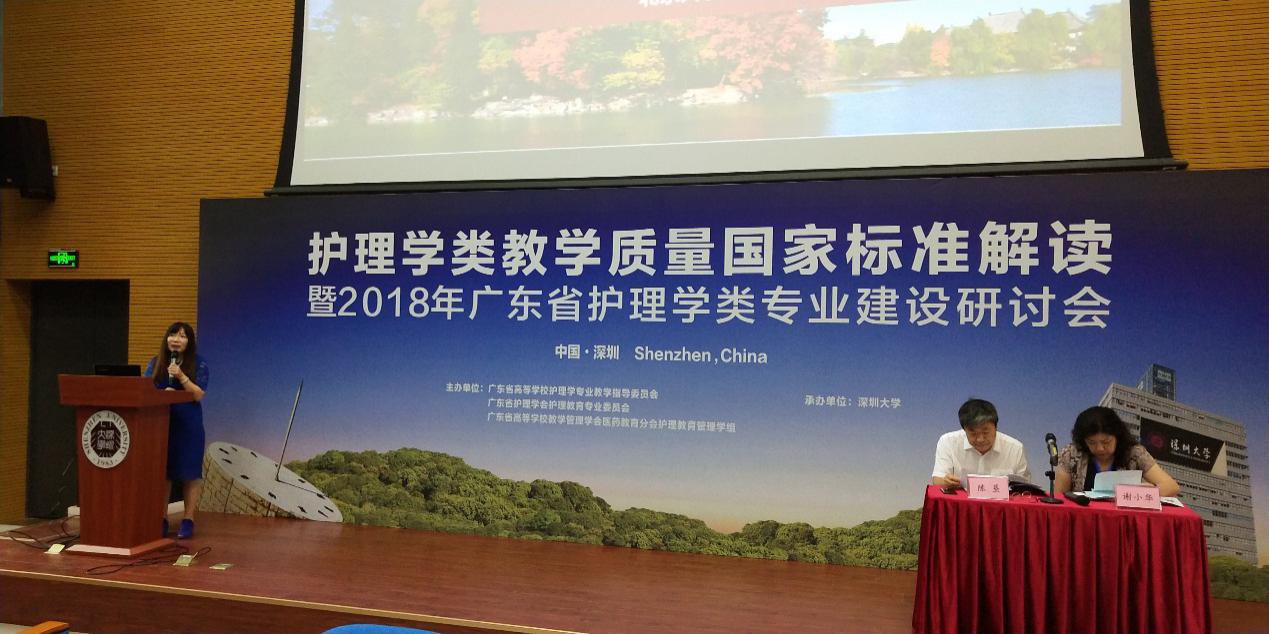 2018年9月6日,由广东省高校护理教学指导委员会、广东省护理学会护理教育专业委员会、广东省高校教学管理学会,护理教育管理组共同主办,深圳大学医学部护理学院承办的“护理学类教学质量国家标准解读暨2018年广东省护理学类专业建设研讨会”在西丽校区A5报告厅圆满召开,本次会议以全面解读护理学类教学质量国家标准为主旨,认真学习贯彻落实国家标准,坚持以提高护理专业人才培养质量,加快建设高水平护理本科教育为核心,全面提高高等护理院校人才培养能力。