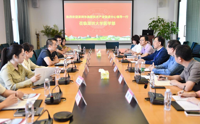 随后朱卫国介绍了医学部近年在学科建设、人才培养等方面的发展情况,邴杰也简单介绍了深圳市高新技术产业促进中心概况,双方就高校教师创业、政府扶持政策、知识产权转化等方面展开充分交流。
