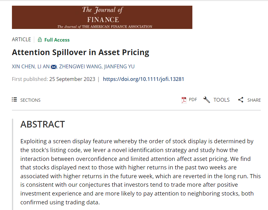 金融科技学院陈鑫助理教授在UTD 24顶级期刊《Journal of Finance》上发表论文