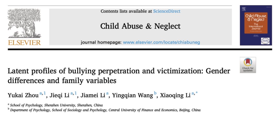 心理学院李小青老师的研究成果在国际期刊《Child Abuse & Neglect》上在线发表