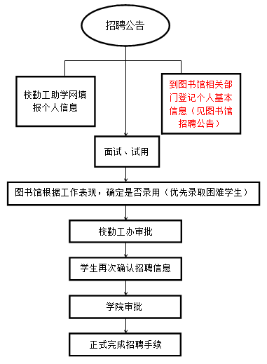 - 招聘时间:每学期初,招聘学期固定岗位;寒暑假前,招聘寒暑假岗位。在学校公文通和图书馆网站发布招聘公告。
